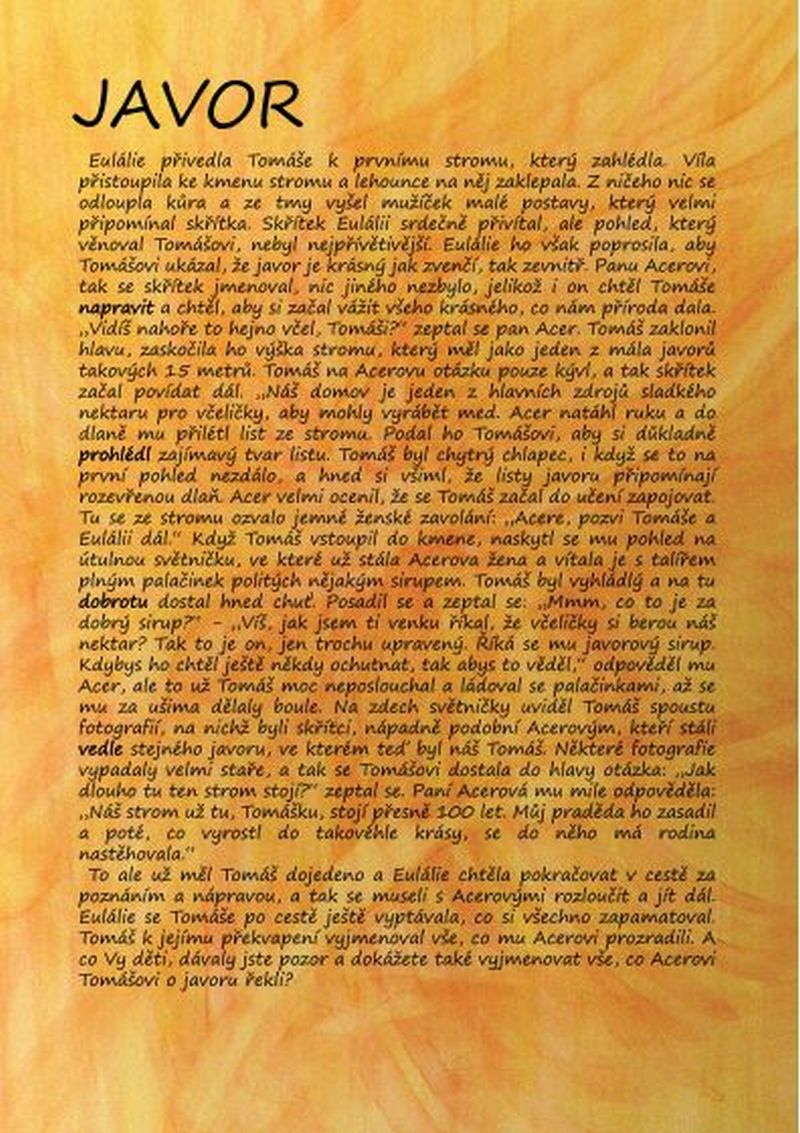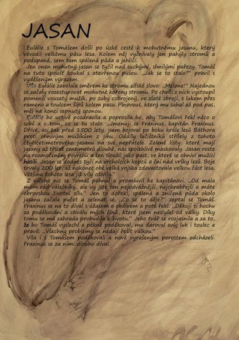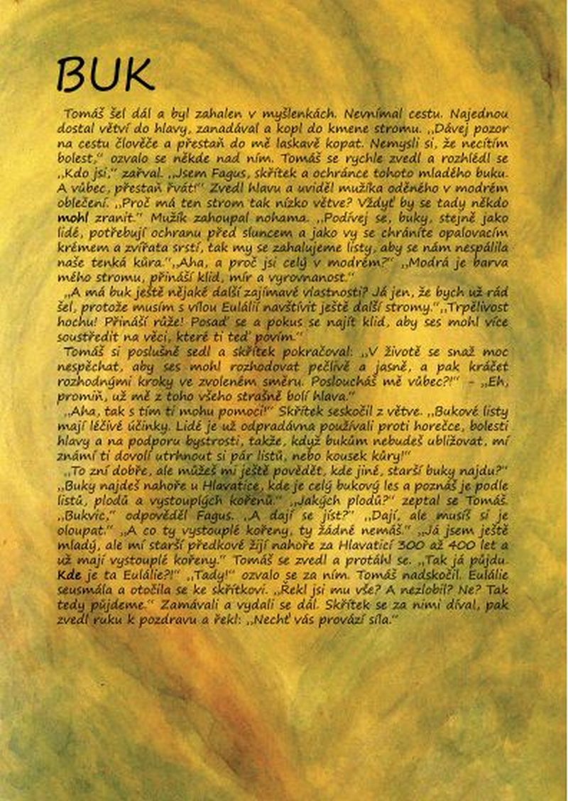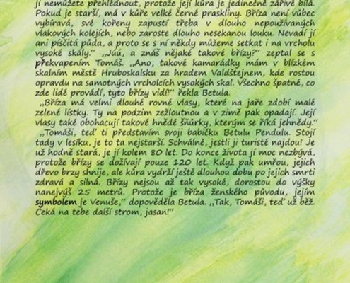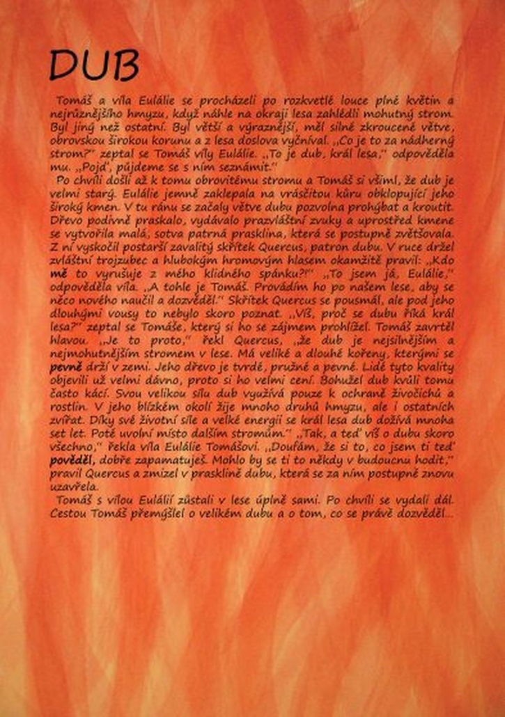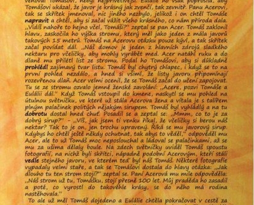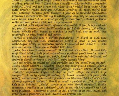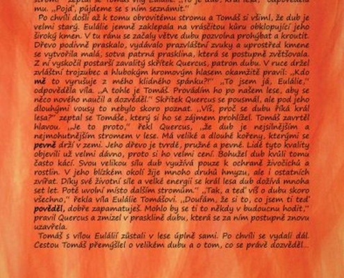 „Jsme Eulálie, víla tohoto stromu. Víš vůbec, co je to za strom?“ Tomáš přemýšlel, ve škole se to učili: „Smrk, modřín?“