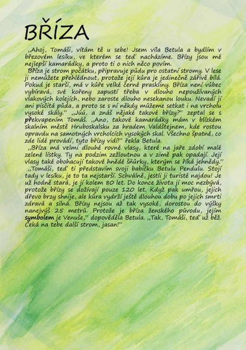 Součástí Brány do Českého ráje je naučná stezka, věnovaná sedmi stromům, s kterými zde pracujeme (bříza, buk, dub, jasan, javor, jilm, třešeň). U každého zastavení naleznete jednu kapitolu z příběhu o Tomášovi, víle Eulálii a bytosti toho kterého stromu, tak jak je pro Vás připravili žáci waldorfské školy v Semilech. Zde uvádíme úvodní a závěrečný příběh příběh. Příběhy jednotlivých stromů jsou vloženy jako odkazy na obrázky ve formátu jpeg. Fotografie z otevření naučné stezky v roce 2010.