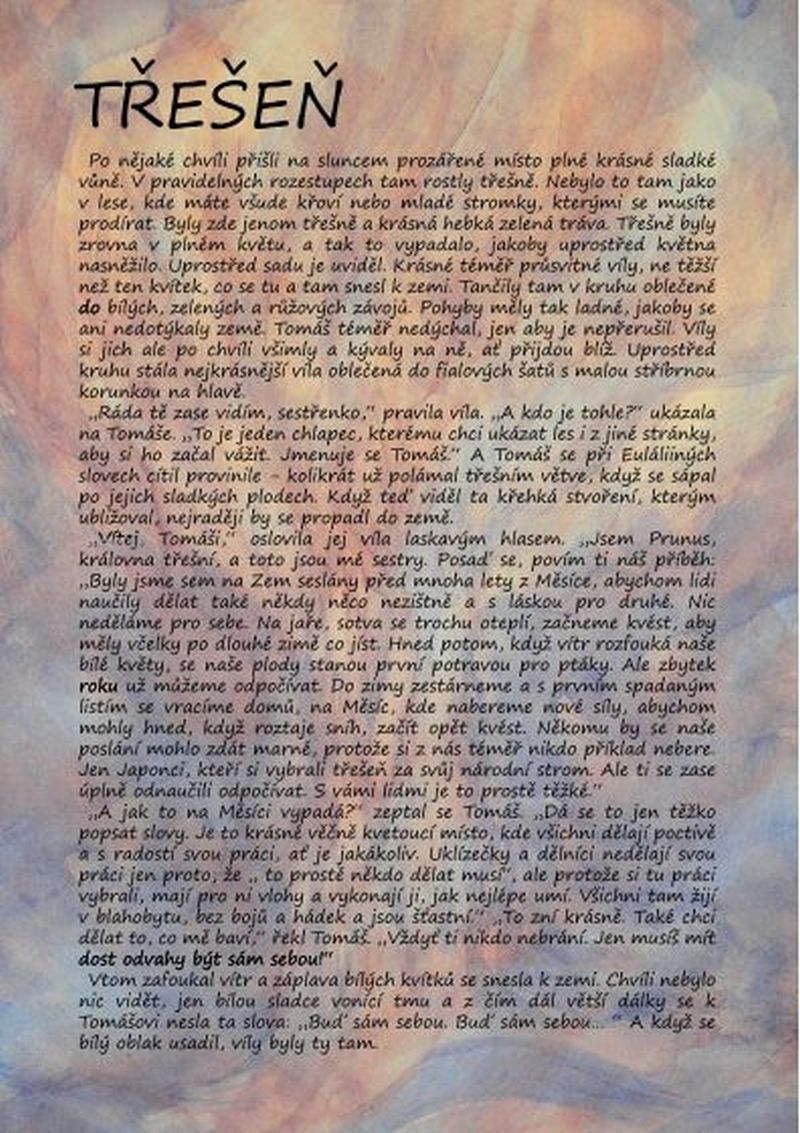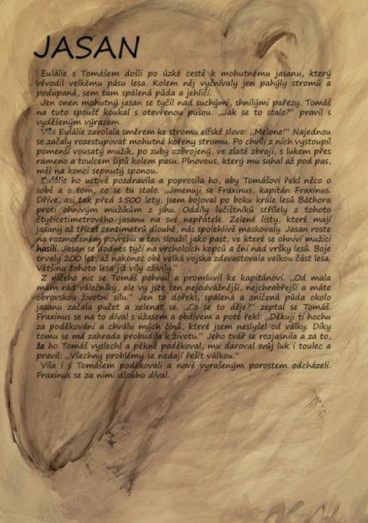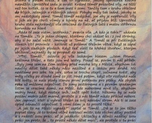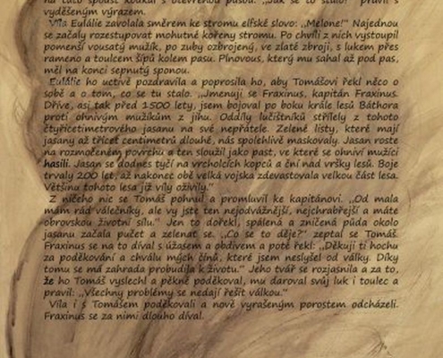 „Tak se mě chyť za ruku.“ Tomáš se chytil nejnižší větve a najednou viděl místo stromu vedle sebe vílu. Usmála se na něho: „Tak půjdeme.“